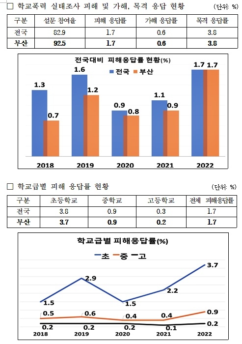 부산교육청 2022년 1차 학교폭력 실태조사 결과 발표